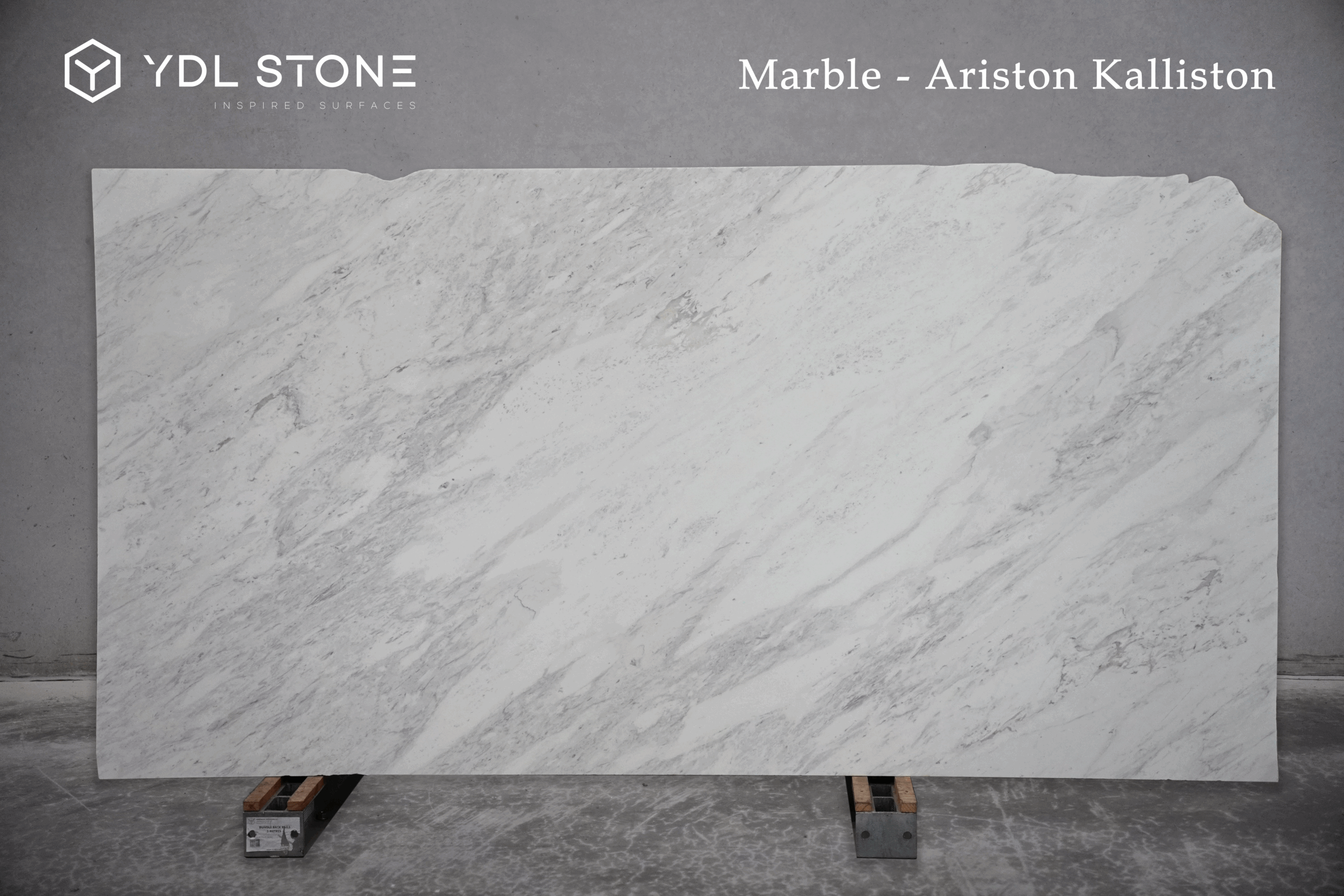 Ariston Kalliston is defined by its clean white background, gently intersected by soft grey veining that adds a natural sense of fluidity and depth. Originating from Greece, this marble’s delicate movement creates a calm, inviting atmosphere, reminiscent of soft clouds or flowing water. Its honed finish provides a smooth, matte surface, which complements a variety of design aesthetics. This marble is well suited for those looking to enhance their space with a refined and modern touch, effortlessly brightening interiors and pairing seamlessly with lighter tones and neutral cabinetry.