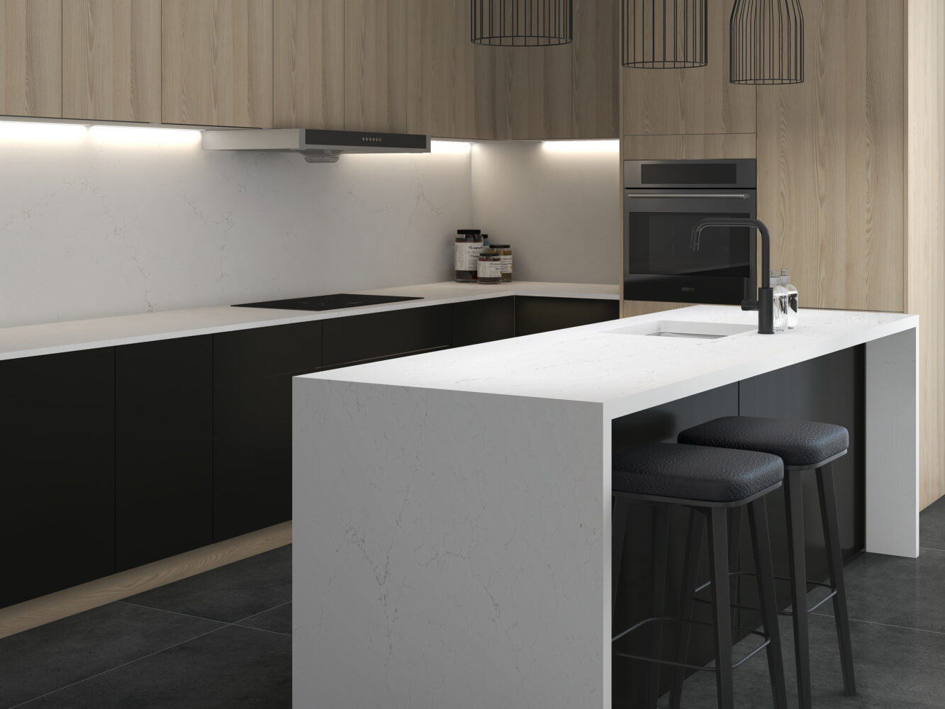 A beautiful subtle vein on a white base polish finish that creates an light grey undertone, making this surface perfect for any project space possible.