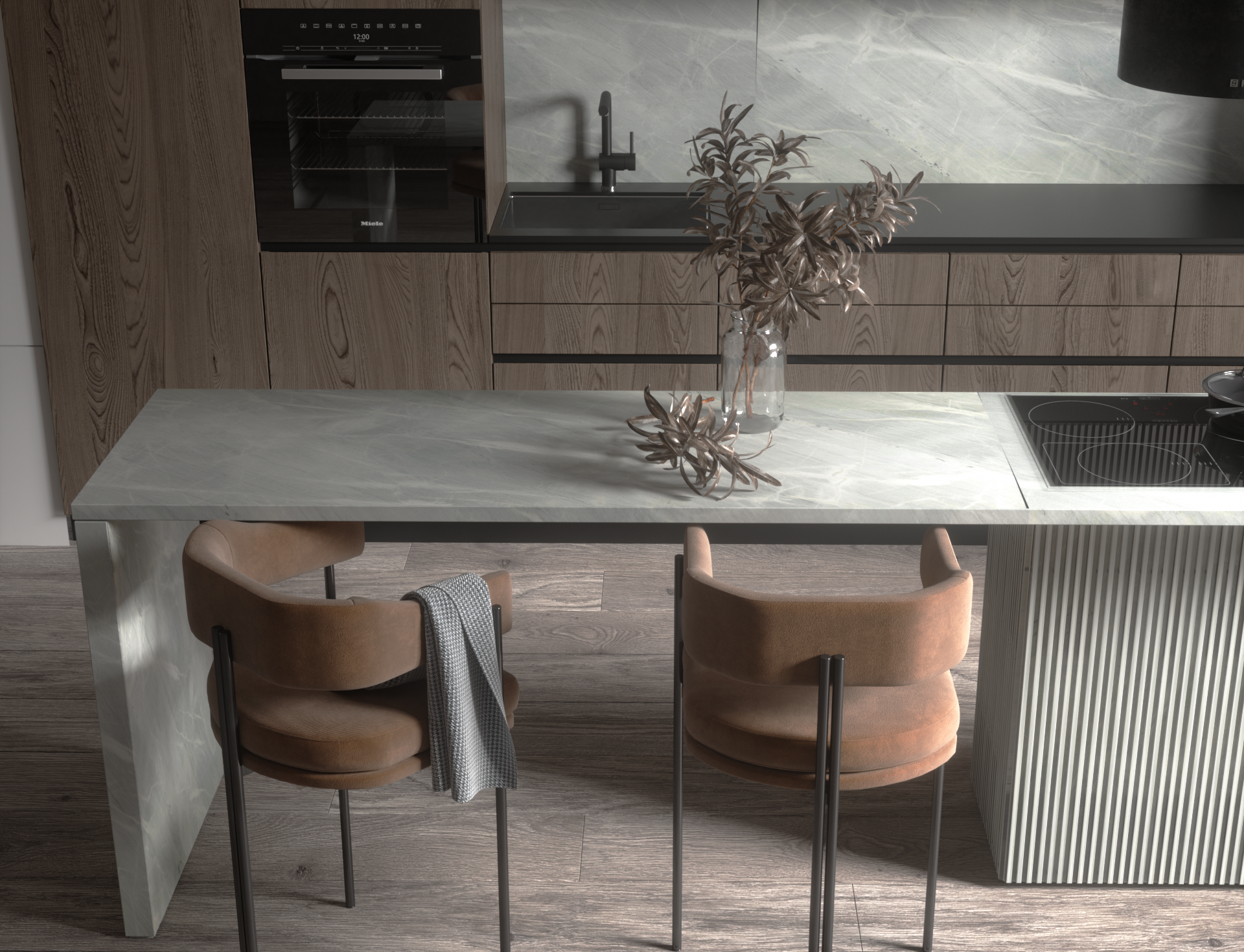Lais Grey, a honed marble from Greece, brings a calm and inviting feel with its soft grey tones and delicate white veining. The gentle patterns across the stone offer a sense of movement, adding depth without overpowering the design. Its smooth, matte finish makes it a versatile choice for creating spaces with a natural and welcoming character