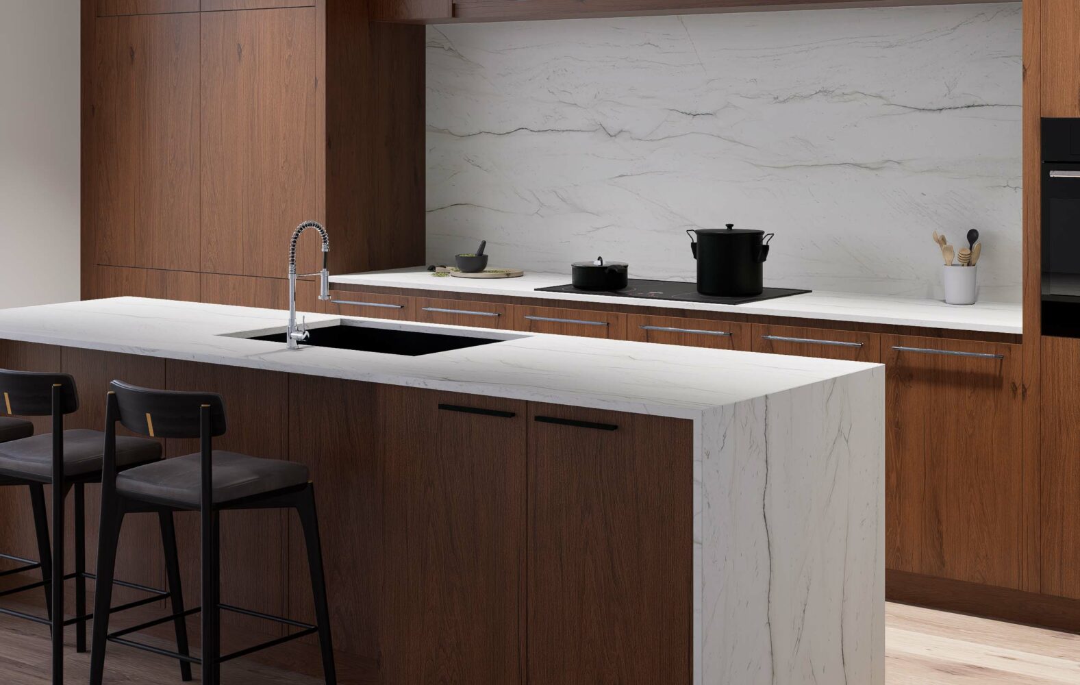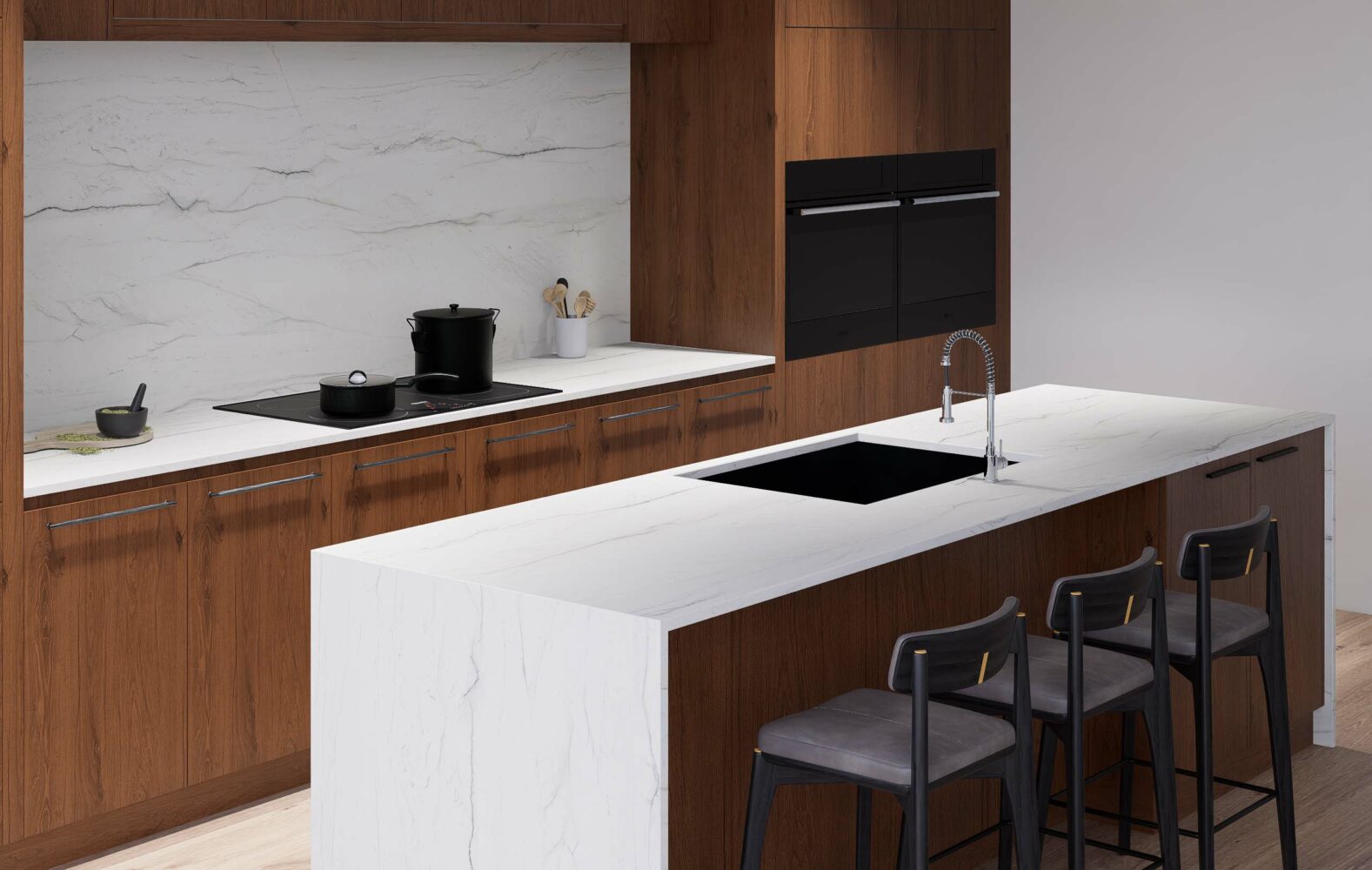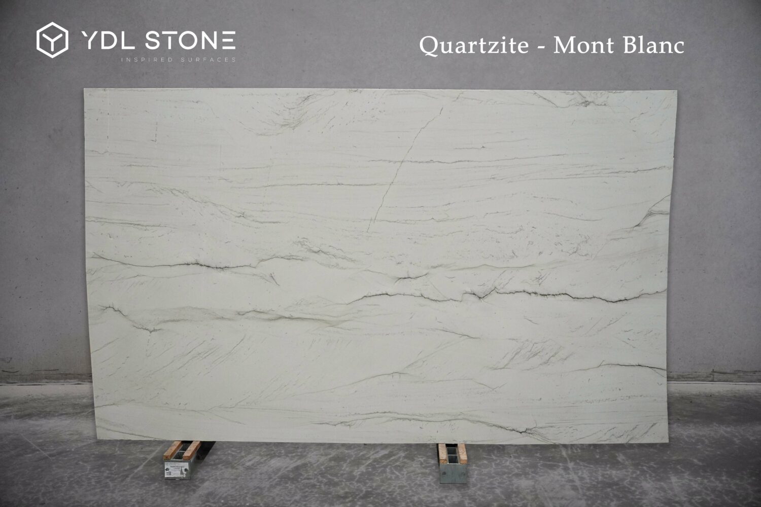 Originating from Brazil, Mont Blanc Quartzite features a soft, creamy white background with delicate linear patterns in light grey. Its honed finish and gentle tones add a natural, calming presence, making it perfect for modern, minimalist spaces. Ideal for kitchen countertops or elegant bathroom vanities, Mont Blanc brings a clean, refined aesthetic and timeless sophistication to any setting.