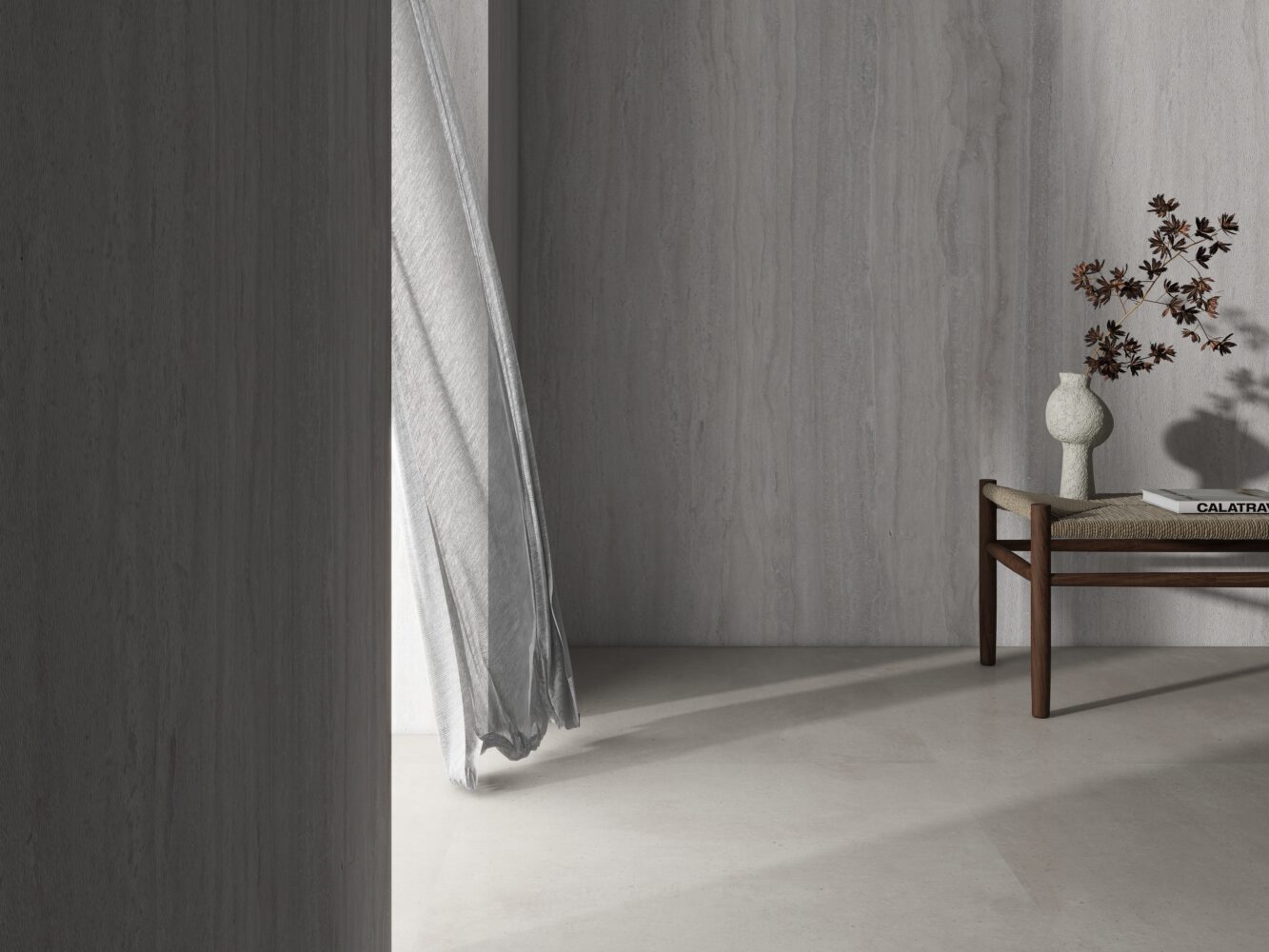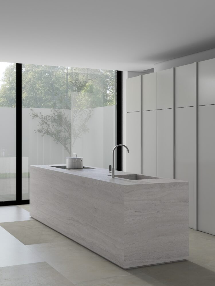 The Ivory Travertine is a warm creamy beige sand tone that transforms the textural presence of weathered stones, creating a natural toned effect quietly building a minimal design in layers of elegant simplicity.