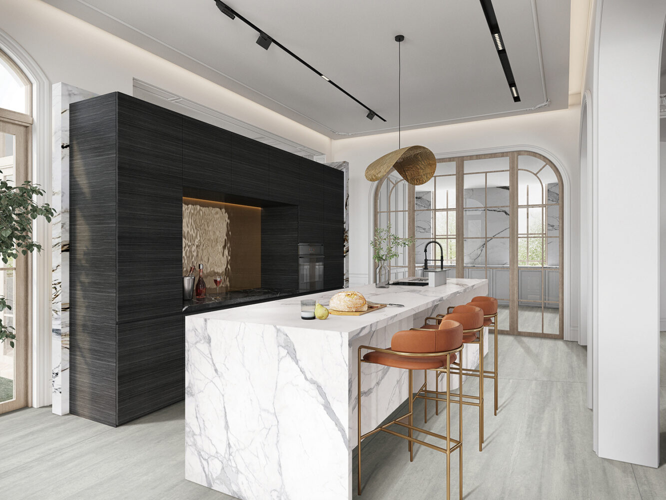 Experience the elegance of a pure white background adorned with dynamic grey veining. From bold, dramatic strokes accent by heavier tones to subtle wisps of soft greys delicately etched into the backdrop, our design offers a reined and versatile aesthetic.