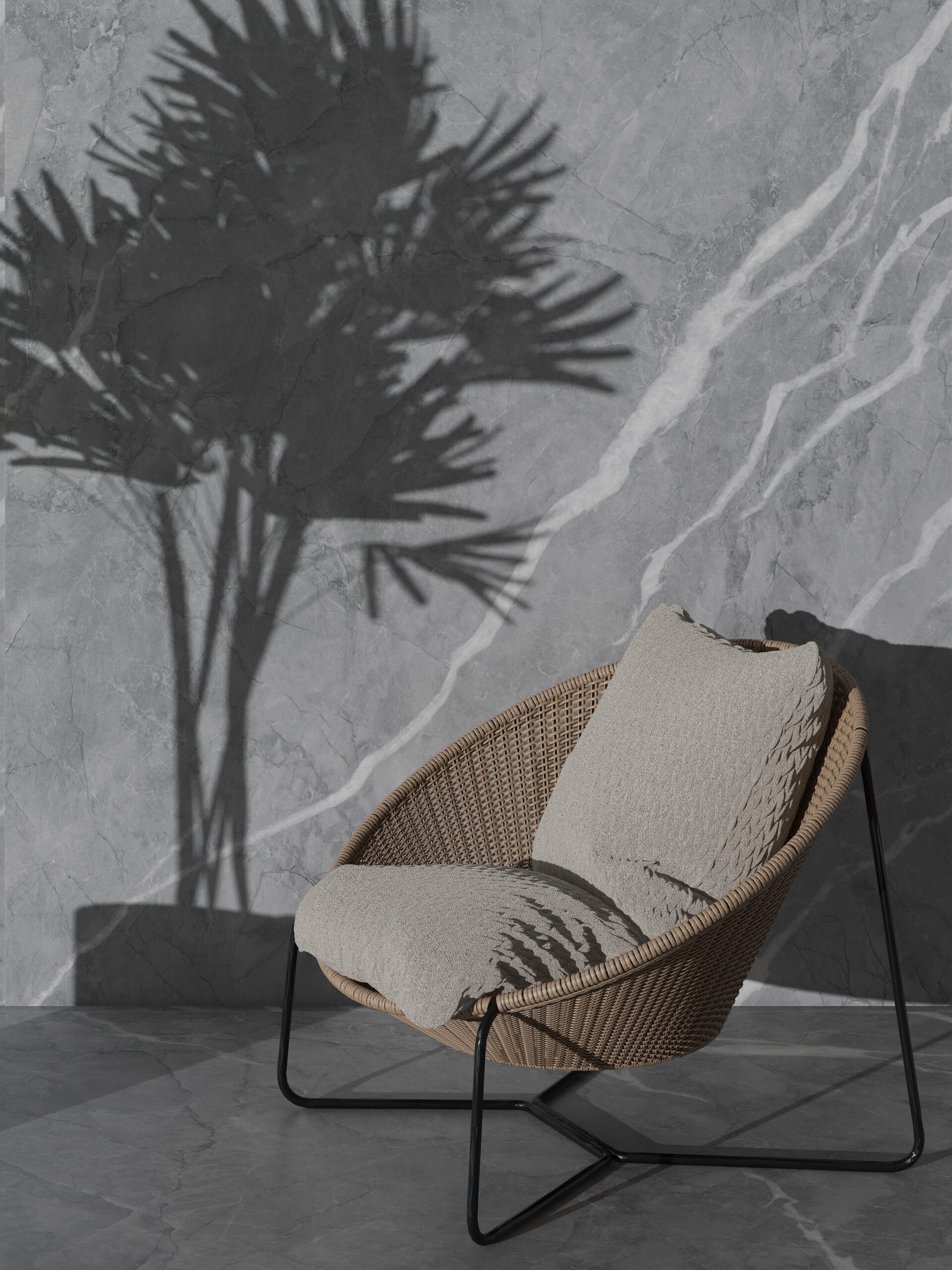 Uncover the rich dark grey base with contrasting white veins creating a captivating impact.