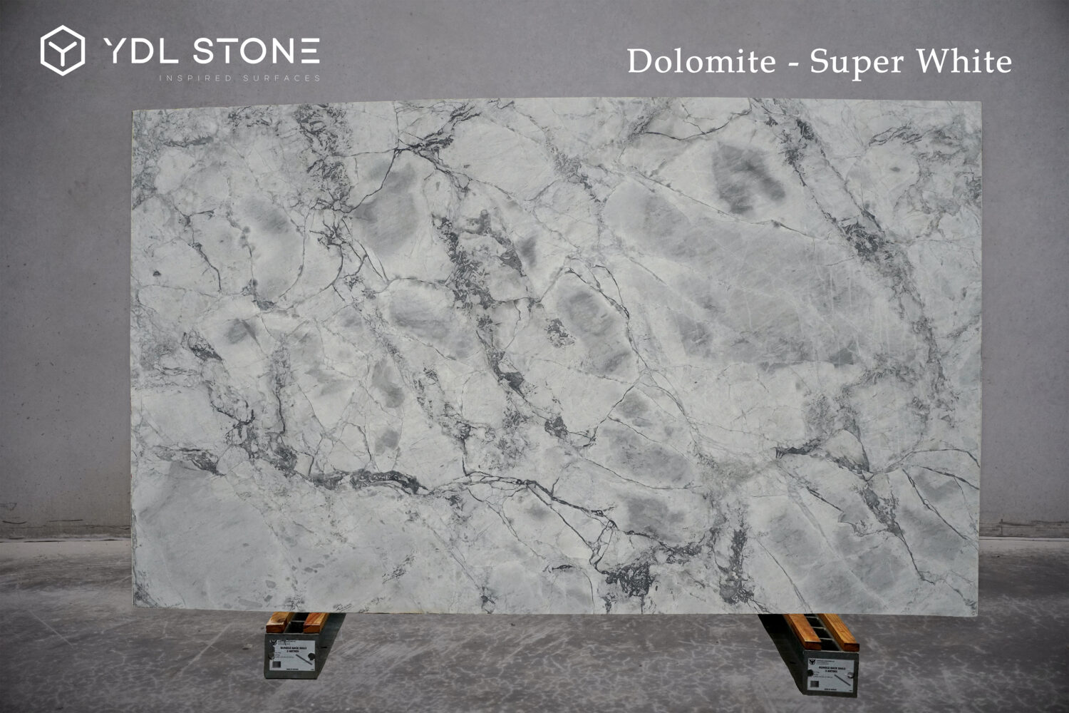 This honed Super White Dolomite from Brazil boasts a striking pattern with layers of smoky grey tones and bold, flowing veining. The interplay of dark and light greys gives it a rich, textured look, while the honed finish provides a soft, matte surface. With its dramatic and refined character, Super White Dolomite brings depth and elegance to any space, making it an ideal choice for a sophisticated statement piece.
